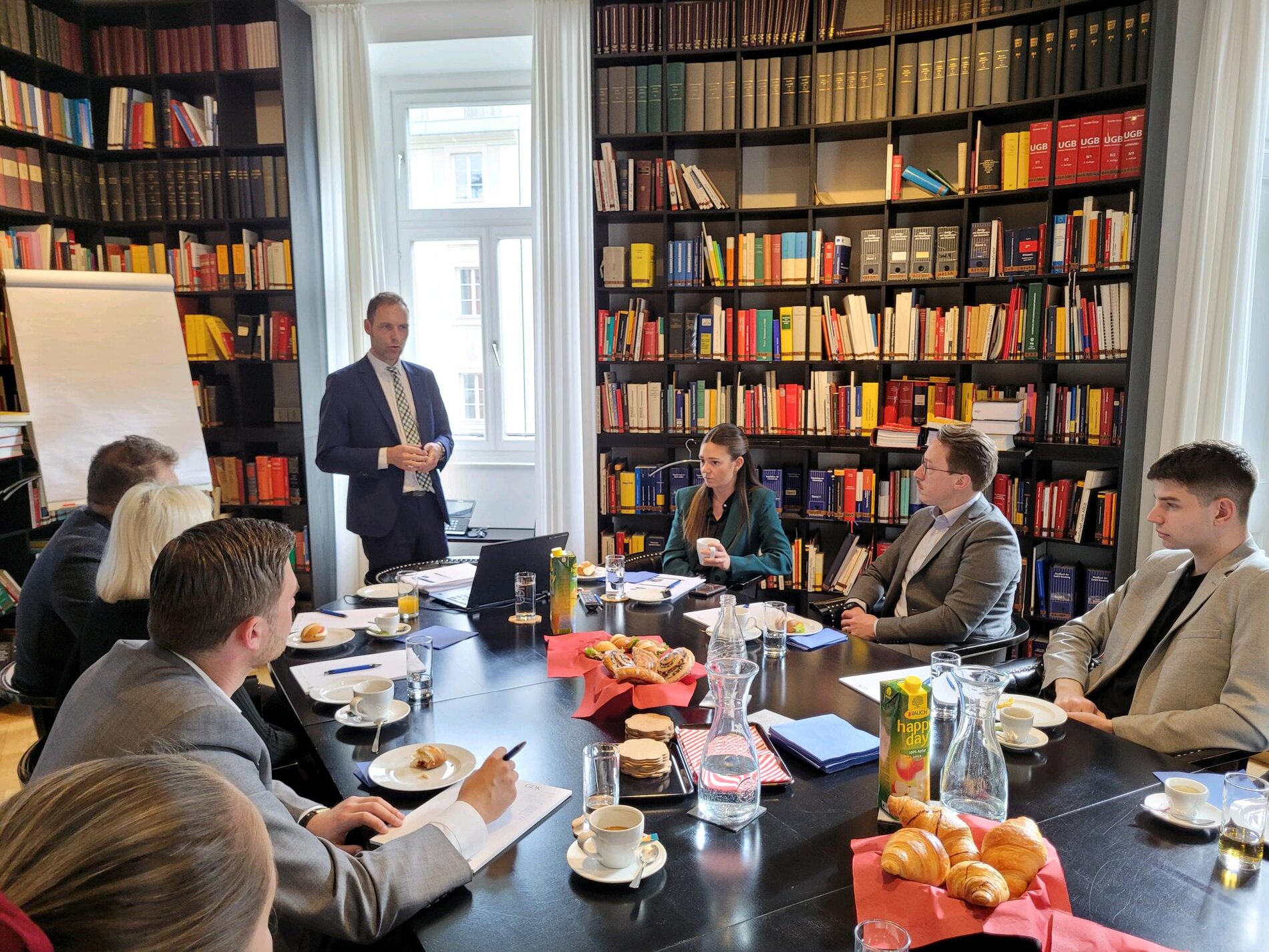 Die Eventreihe Breakfast@Law von ELSA Innsbruck bietet hingegen beides, indem sie regelmäßig Studierende der Rechtswissenschaften und Rechtsexpert:innen zum „Lernen mit Genuss“ an einem Tisch zusammenbringt.