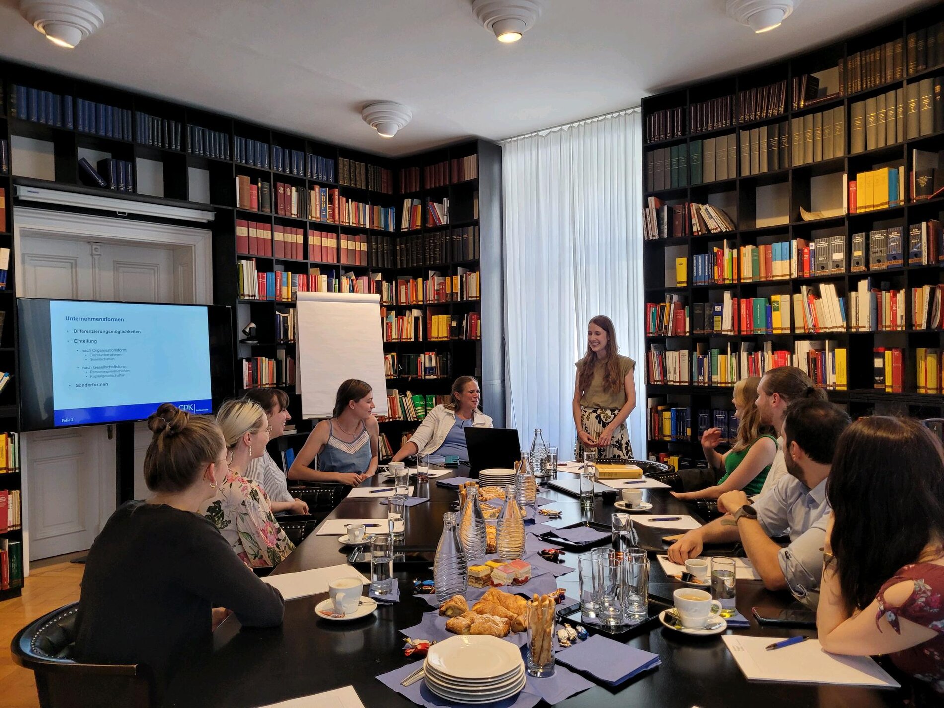 Anhand der fiktiven Gründung eines Start-Ups konnten diese als Unternehmer:innen kreativ werden – von der Geschäftsidee, über die Wahl der perfekten Rechtsform bis hin zur wirtschaftlichen Entwicklung und der Bewältigung von geschäftsrelevanten Ereignissen und deren Auswirkungen wurden zahlreiche Herausforderungen Schritt für Schritt durchgespielt.