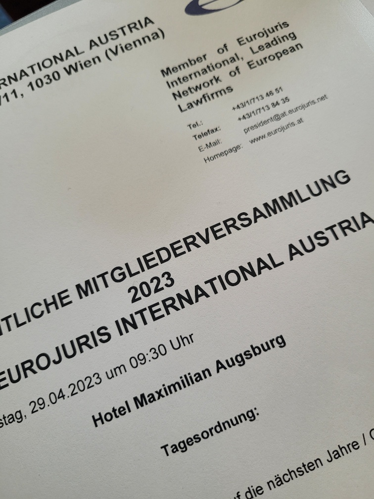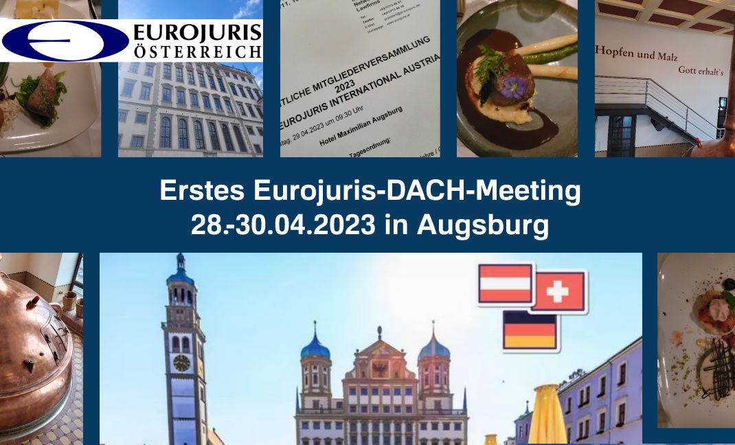 Unsere Partnerinnen RA Barbara Egger-Russe (Präsidentin Eurojuris Österreich) und RA Andrea Pegger (Vorstandsmitglied Jurismus, Organisation von Eurojuris International für die Rechtsanwält:innen unter 40 Jahren) konnten im Rahmen des ersten Eurojuris-DACH-Meetings vom 28. bis 30. April 2023 nicht nur Augsburg als eine der ältesten Städte Deutschlands besser kennenlernen.