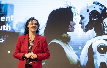 Anhand zahlreicher Beispiele verdeutlichte die visionäre Unternehmerin, dass KI keine Entscheidung, sondern eine Realität darstellt. Die damit verbundenen Herausforderungen gilt es zu meistern. Sabine Singer präsentierte praxisnahe Ansätze, wie Unternehmen ethische Standards sichern und gleichzeitig Innovationspotenziale entfalten können: