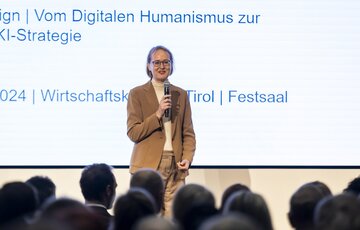 Die globale Pionierin im Bereich der KI-Ethik zog im Festsaal der Wirtschaftskammer Tirol rund 250 Gäste zum Thema „AI Ethics by Design – vom Digitalen Humanismus zur wertebasierten KI-Strategie“ in ihren Bann.