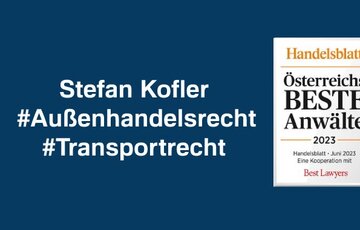 Das deutsche Handelsblatt hat in Kooperation mit dem US-Fachverlag „Best Lawyers“ erneut RA Franz Pegger im Gesellschaftsrecht sowie RA Stefan Kofler im Außenhandelsrecht und Transportrecht als „Österreichs beste Anwälte“ ausgezeichnet.