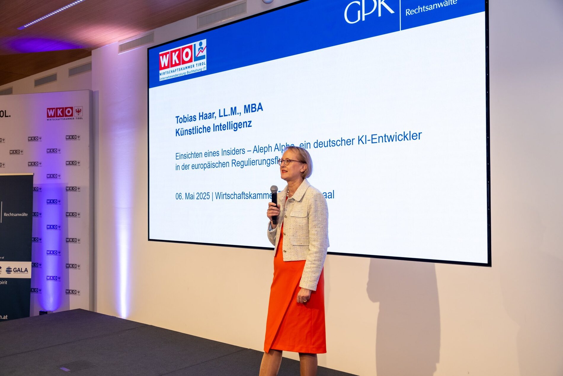 Am 6. Mai 2025 durfte unsere Kanzlei gemeinsam mit der Wirtschaftskammer Tirol rund 300 Gäste zum Expertenvortrag mit KI-Insider Tobias Haar, General Counsel des deutschen KI-Entwicklers Aleph Alpha, im ausgebuchten Festsaal der WK Tirol begrüßen. Im Fokus standen die technologischen, rechtlichen und gesellschaftlichen Herausforderungen, die der Einsatz generativer Künstlicher Intelligenz heute mit sich bringt.