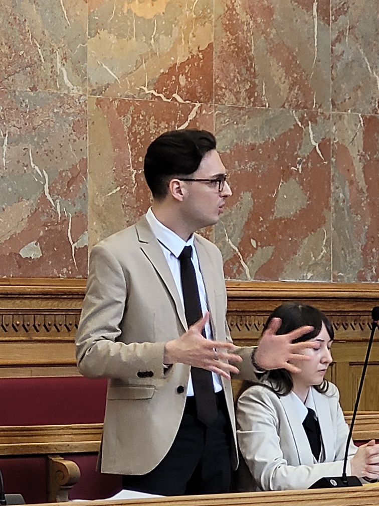 Im Schwurgerichtssaal des Landesgerichtes haben die insgesamt sechs Teams aus Nachwuchsjurist:innen versucht, den „Obersten Moot Court“ mit ihren stärksten Argumenten von der jeweils zuvor in Schriftsätzen und Plädoyers festgehaltenen Rechtsansicht zu überzeugen.
