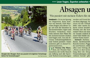 Der Vienna City Marathon, der Ötztaler Radmarathon, der weiße Rausch am Arlberg und alle Sport- und Kulturveranstaltungen werden auf Grund der Corona-Krise abgesagt. Und was, wenn ich die Teilnahmegebühr oder meine Konzertkarte schon beglichen habe? Werden mir die Kosten erstattet? Muss ich einen neuen Termin einfach hinnehmen? Oder bleibt ich gar auf meiner Karte sitzen?
