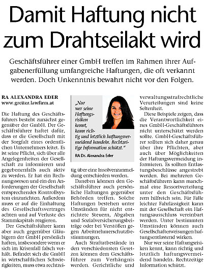 Geschäftsführer treffen im Rahmen ihrer Aufgabenerfüllung umfangreiche Haftungen, die oft verkannt werden.