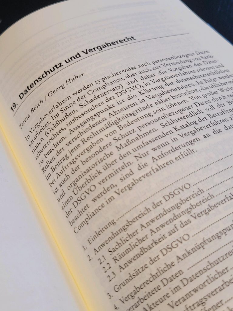 48 namhafte Vergaberechts- und Compliance-Expert:innen aus Wissenschaft und Praxis bereiten hier den vergaberechtlichen Compliance-Prozess praxisnah und fundiert auf – darunter unser RA Georg Huber und unsere RAA Teresa Bösch, die das Kapitel zum Thema „Datenschutz und Vergaberecht“ beisteuern durften.
